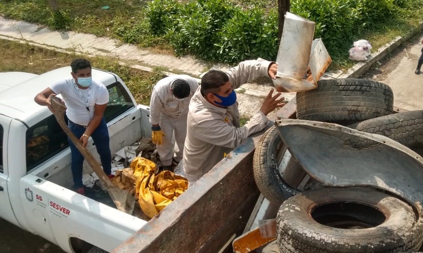 Xalapa, Ver.- Dentro de las tareas para el control de enfermedades transmitidas por vector como dengue, zika y chikungunya, la Secretaría de Salud (SS) sigue implementado acciones de descacharrización y eliminación de criaderos, en coordinación con personal de las once jurisdicciones sanitarias.