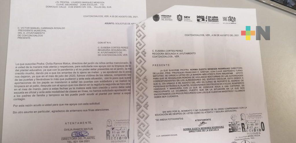 La edil informó que tan solo durante la última semana el Jardín de Niños «Lourdes Márquez Mendoza» y la Escuela Primaria «Francisco H. Santos» fueron víctimas de robo, situación que se ha dado principalmente en las colonias marginadas de Coatzacoalcos.