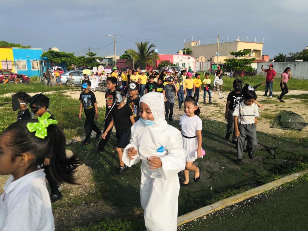 Este jueves, la campaña llegó a uno de los sectores considerados como foco rojo por el número de casos reportados, que es Ciudad Olmeca al poniente del municipio, en el cual participaron más de 400 niños.
