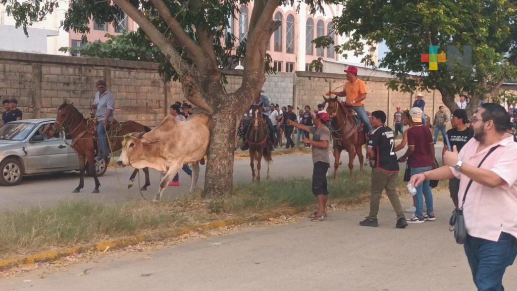 Coatzacoalcos, Ver.- En el segundo día de festividades a «San Isidro Labrador» se realizó por las calles de Villa Allende el tradicional paseo del toro y la regada de frutas en esta fiesta de raíces istmeñas.