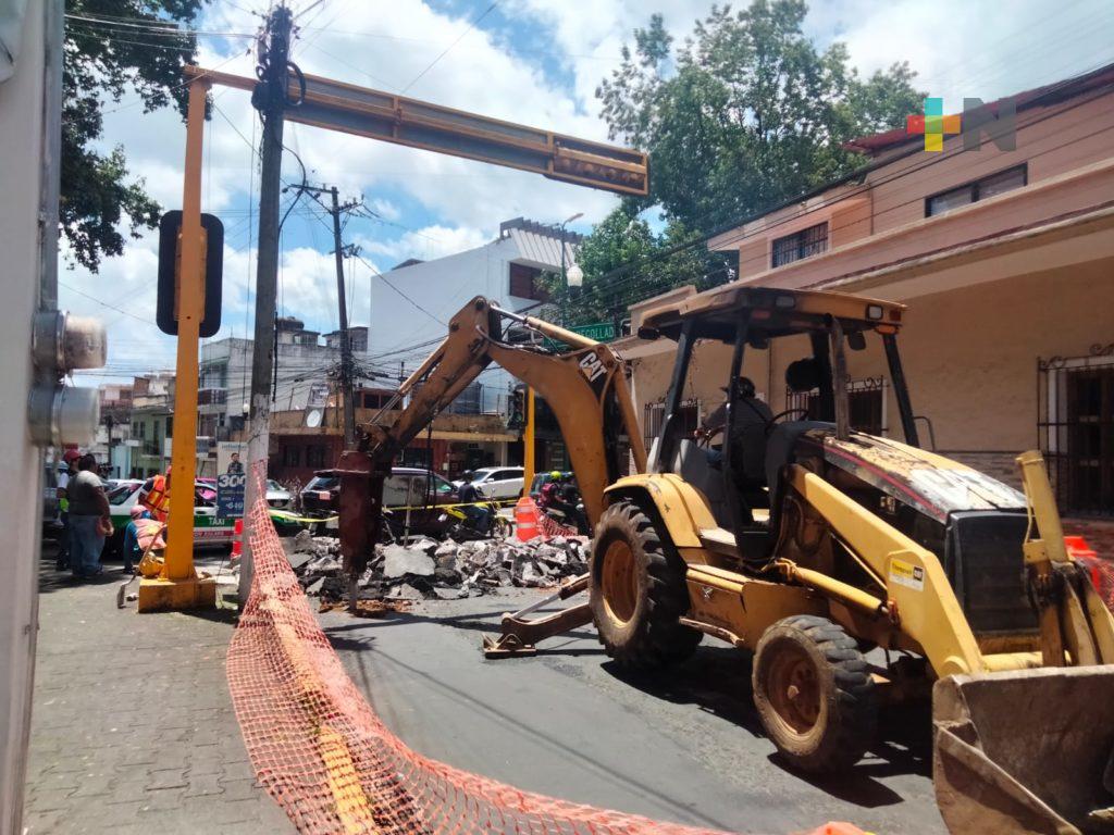 Continúan las obras en el centro de Xalapa, ahora en Santos Degollado