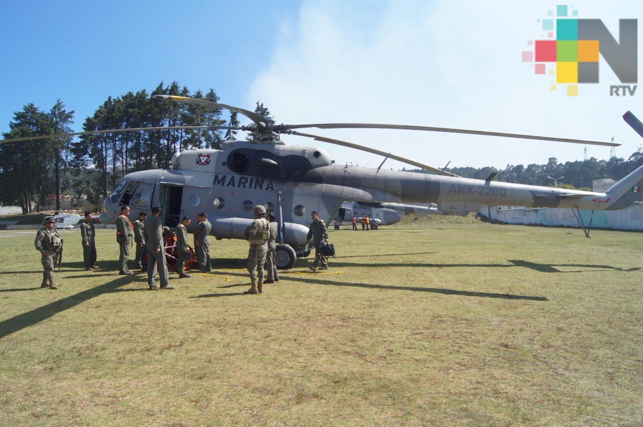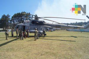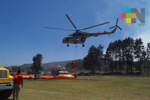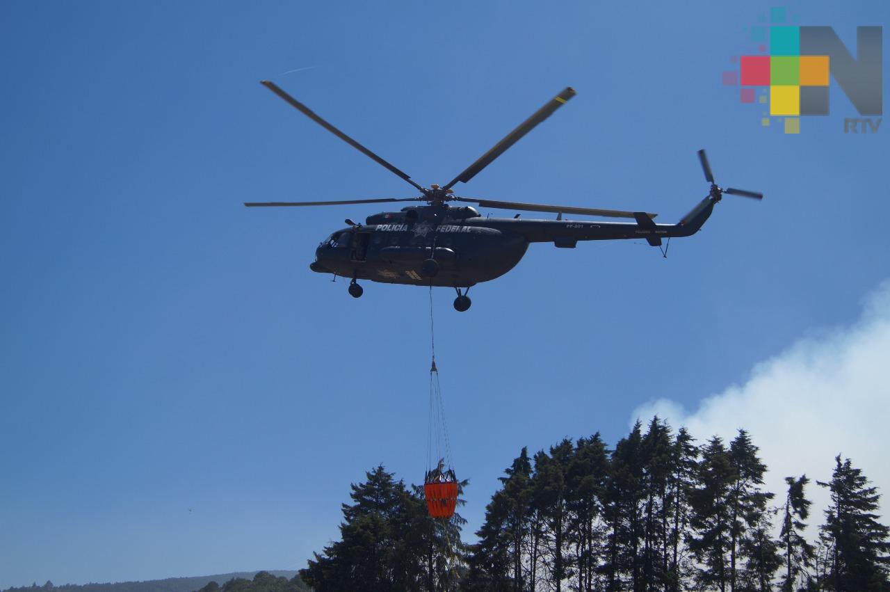 Las Vigas de Ramírez, Ver.- Con apoyo de dos helicópteros de la Secretaría de Marina Armada de México (SEMAR), uno de la Secretaría de la Defensa Nacional, uno de la Policía Federal (PF) y otro de la Comisión Nacional del Agua (CONAGUA) equipados con helibaldes y tanques cisterna se realizaron 139 descargas con 229 mil 200 litros de agua con retardarte, así como vuelos de valoración y dirección de recursos tácticos sobre la zona afectada por el incendio forestal registrado en el municipio de Las Vigas de Ramírez, logrando hasta el momento un control del 85 por ciento del siniestro, y un 60 por ciento de liquidación.