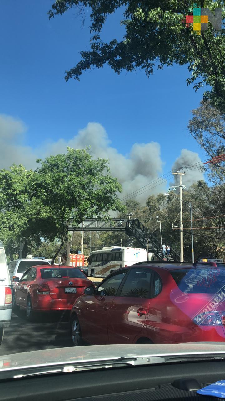 La densidad del humo provocado por el incendio y los fuertes vientos en la zona, dificultaron las acciones de mitigación; por lo que fue necesario suspender el tránsito vehicular en la zona, como medida de prevención.