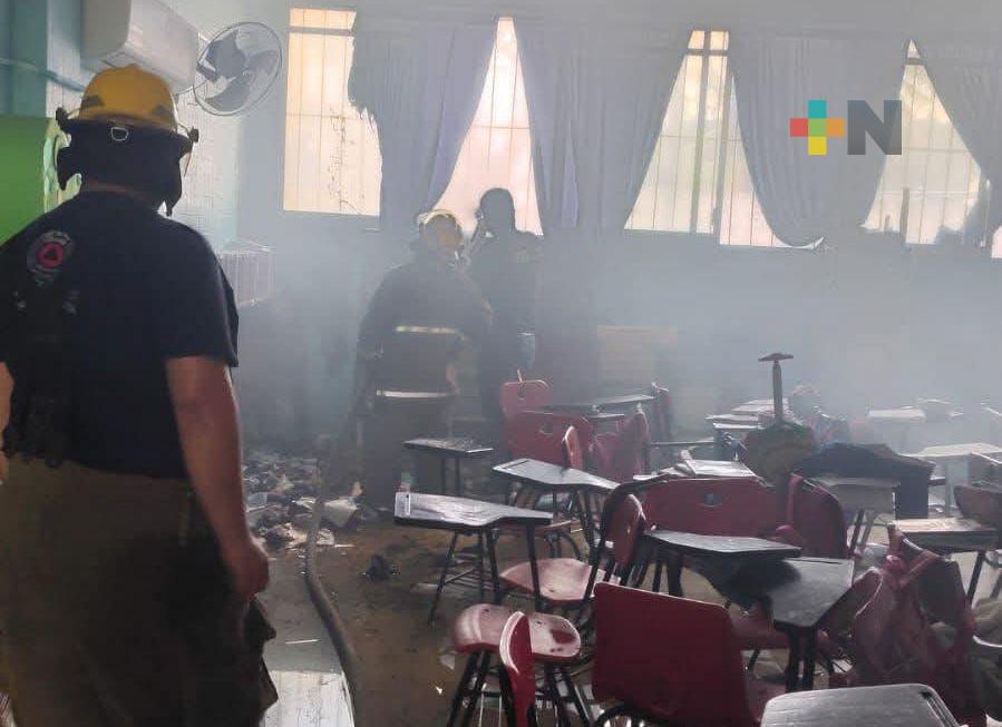 El siniestro fue reportado poco después de las 9:00 de la mañana, movilizando de inmediato a elementos de Protección Civil y Bomberos de Minatitlán, quienes lograron controlar las llamas antes de que se extendieran a otras áreas del plantel.