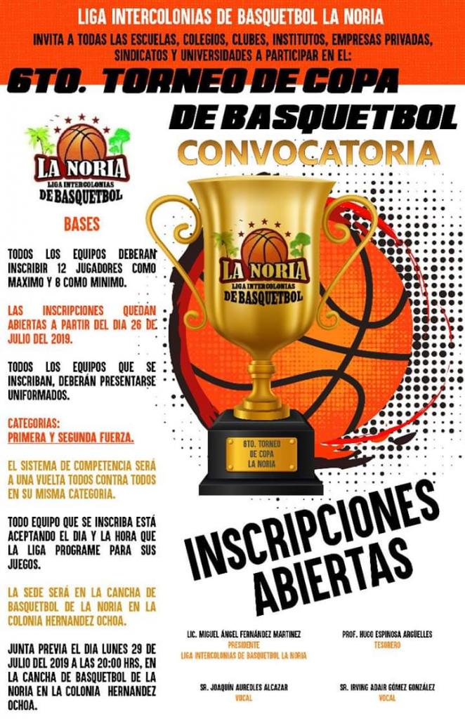 Coatzacoalcos, Ver.- A días de haber finalizado con el torneo de liga, el Circuito de Basquetbol Intercolonias La Noria de Coatzacoalcos, arrancó con la etapa de registros rumbo al sexto certamen de copa.