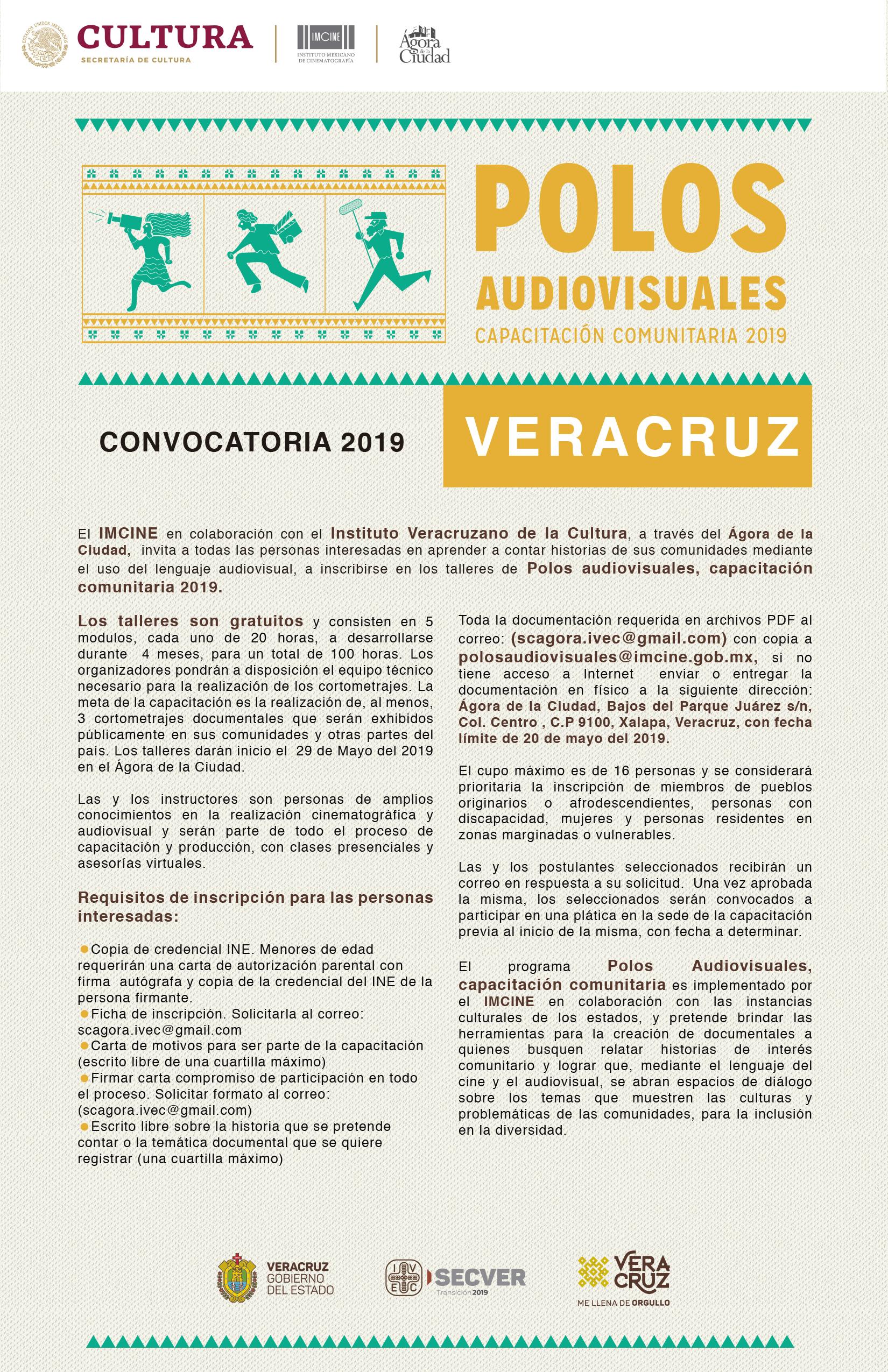 Xalapa, Ver.- El Instituto Mexicano de Cinematografía (IMCINE), en colaboración con el Instituto Veracruzano de la Cultura (IVEC), invitan a los interesados en aprender a contar historias sobre sus comunidades mediante el uso del lenguaje audiovisual, a inscribirse en los talleres del programa “Polos Audiovisuales, capacitación comunitaria”, que se llevarán a cabo a partir del 29 de mayo del presente año en el Ágora de la Ciudad, en Xalapa.