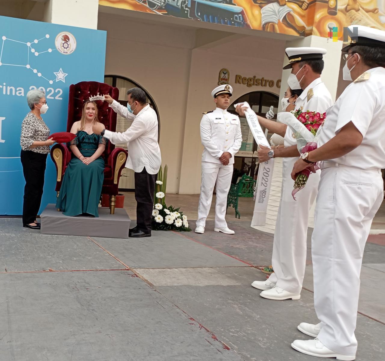 Coatzacoalcos, Ver.- Autoridades Navales, civiles y militares fueron testigos de la coronación de Sarah Enif Rosas Mendoza, como Reina de la Marina 2022.