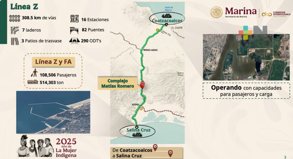 Finalmente, la presidenta Claudia Sheinbaum acotó que el Interoceánico “no solamente es una conectividad entre Veracruz y Oaxaca, sino que pues permite la conectividad entre el Pacífico y el Atlántico, es una alternativa al Canal de Panamá”.