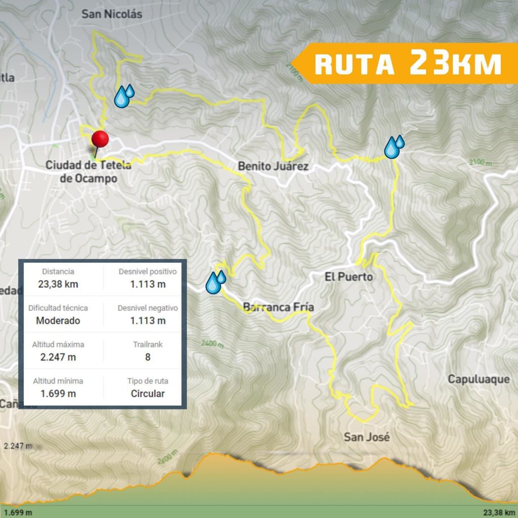 El Trail Tetela 2022 cuenta con aforo limitado a 300 corredores, el horario de salida e inicio en todas las distancias (6, 13 y 23 kilómetros) será a partir de las 07:00 horas.