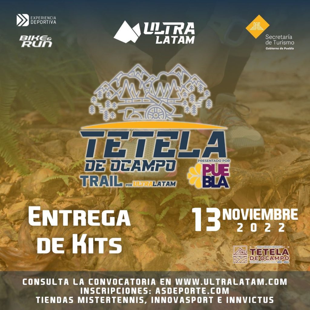 La entrega de kits a los participantes se realizará este sábado 12 de noviembre, de 15:00 a 20:00 horas en bajos del Palacio Municipal de Tetela de Ocampo, Puebla.