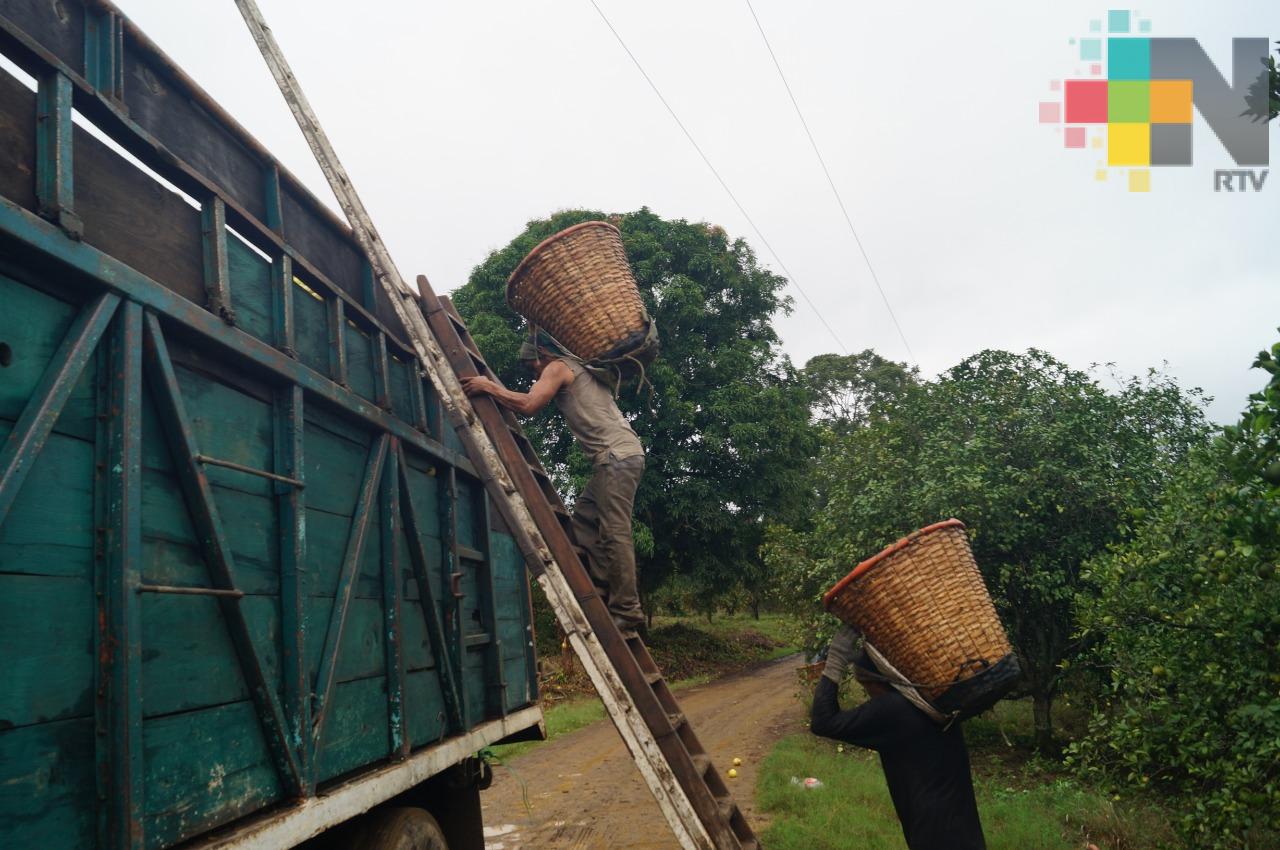 Martínez de la Torre, Ver.- Las cuadrillas de trabajadores llegan desde muy temprano a los cultivos de cítricos, para iniciar su labor