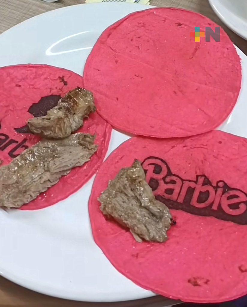 Tal ha sido lo llamativo de la tortilla color rosa con logos de la palabra Barbie y silueta de la muñeca que incluso otros usuarios han creado memes, Tik Toks y reels sobre este ingenio veracruzano.