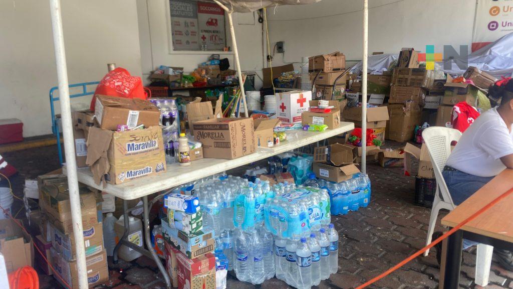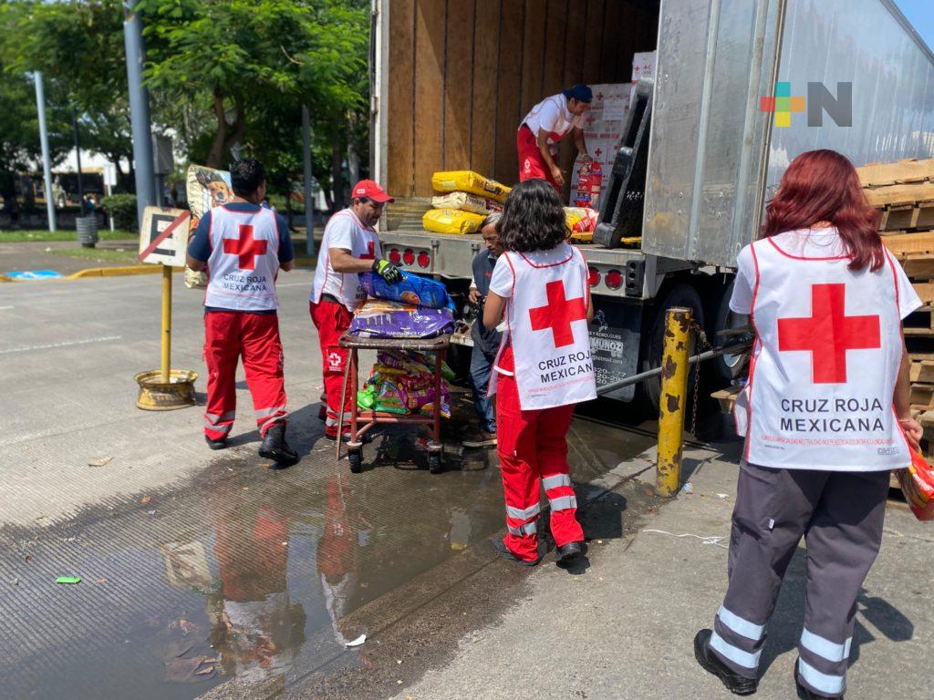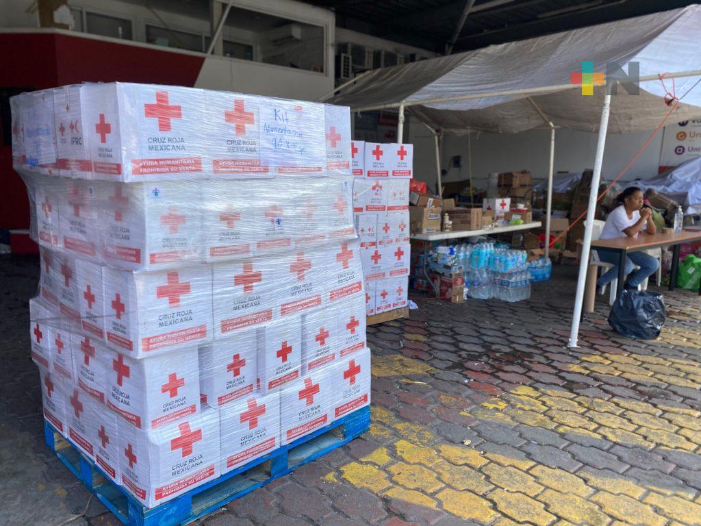 El centro de acopio de la Cruz Roja Mexicana en Veracruz concentra los donativos enviados desde Xalapa, Córdoba y Orizaba. En conjunto con universidades y empresas privadas, preparan una primera caja de transporte con alimentos, kits de limpieza y artículos de higiene personal.