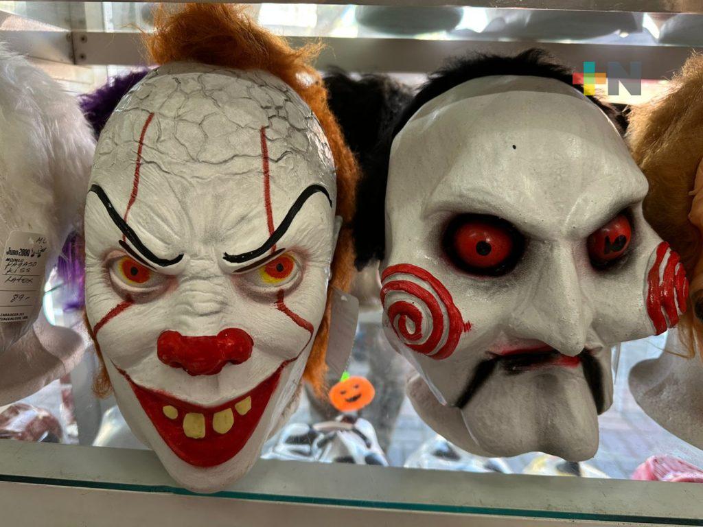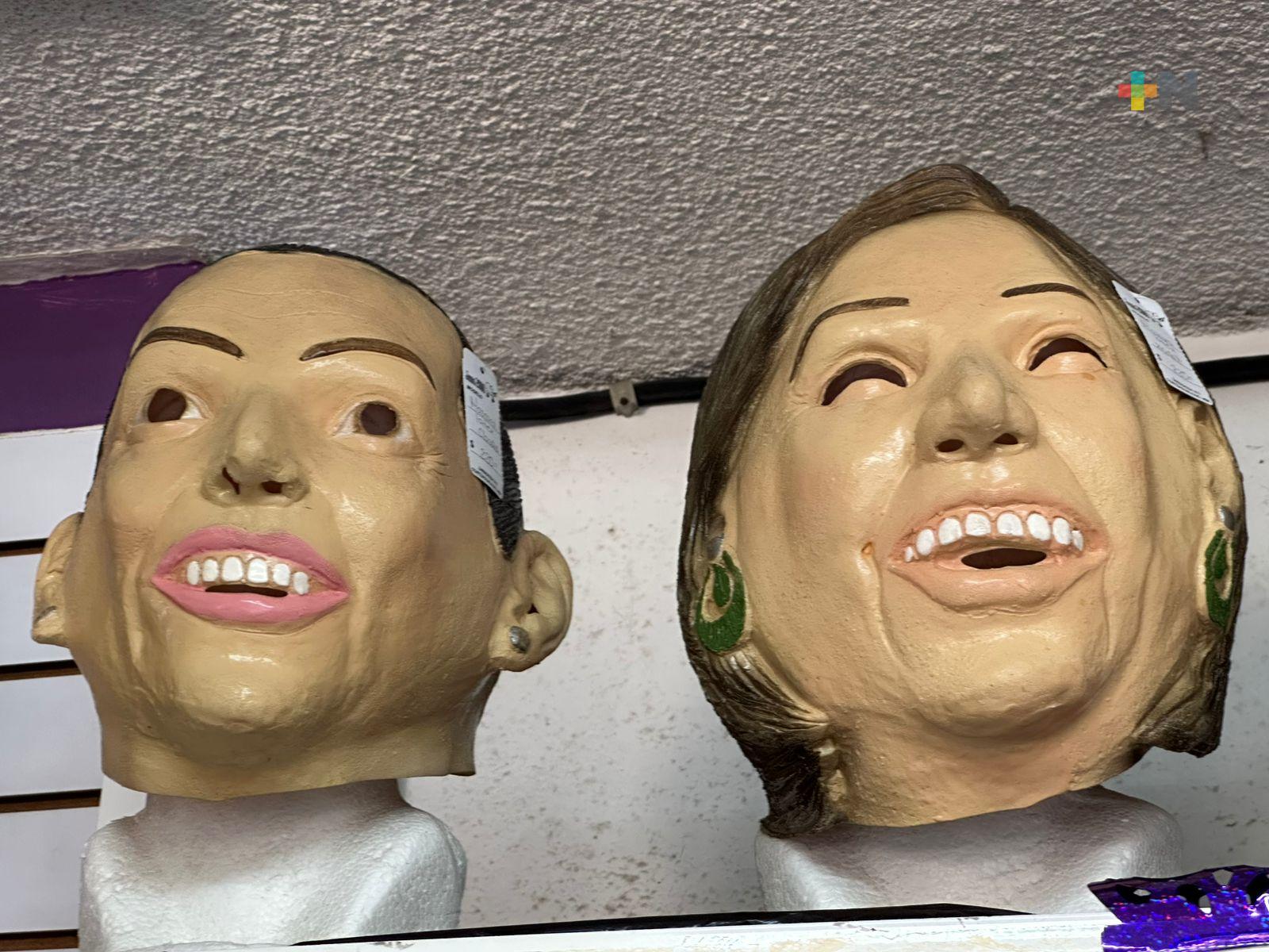 Coatzacoalcos, Ver.- Desde máscaras de la presidenta de México, Claudia Sheinbaum Pardo y de la excandidata, Xóchitl Gálvez, hasta personajes de las películas más populares y la tradicional catrina mexicana, son los disfraces que se exhiben en Coatzacoalcos para la temporada de Halloween.