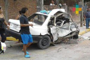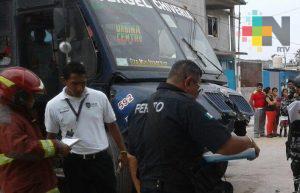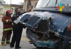 Veracruz, Ver.- Cuatro personas lesionadas de gravedad y cuantiosos daños materiales es el saldo de un choque entre un camión urbano y un automóvil particular en la colonia El Vergel, de Veracruz.