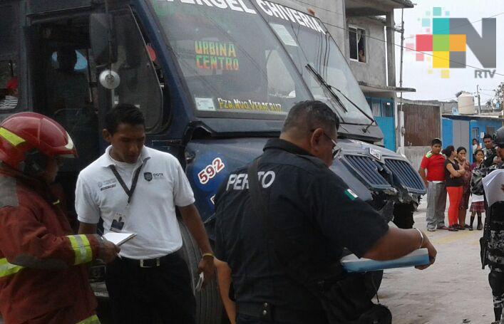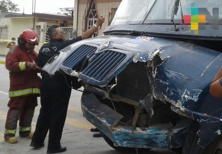 Veracruz, Ver.- Cuatro personas lesionadas de gravedad y cuantiosos daños materiales es el saldo de un choque entre un camión urbano y un automóvil particular en la colonia El Vergel, de Veracruz.