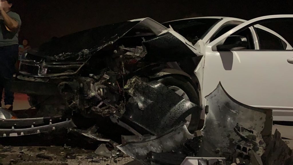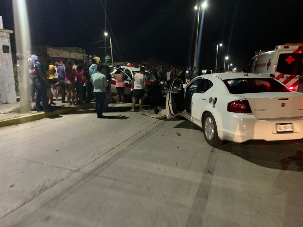 Los hechos ocurrieron alrededor de las 19 horas de este jueves cuando el conductor en aparente estado de ebriedad del Dogde Avenger color blanco circulaba de sur a norte e invadió carril del taxi marcado con el número económico 5865 Nissan tipo March, esto provocó que chocaran de frente.