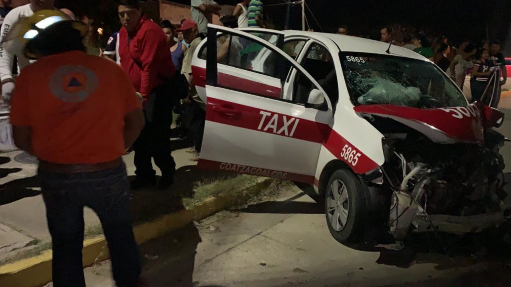 Coatzacoalcos, Ver.- Cuatro personas lesionadas y miles de pesos en daños materiales fue el resultado de un fuerte accidente entre un taxi y un automóvil particular en la avenida Santa Trinidad y Zomelahuacán, de la colonia Lomas de Barrillas de Coatzacoalcos.