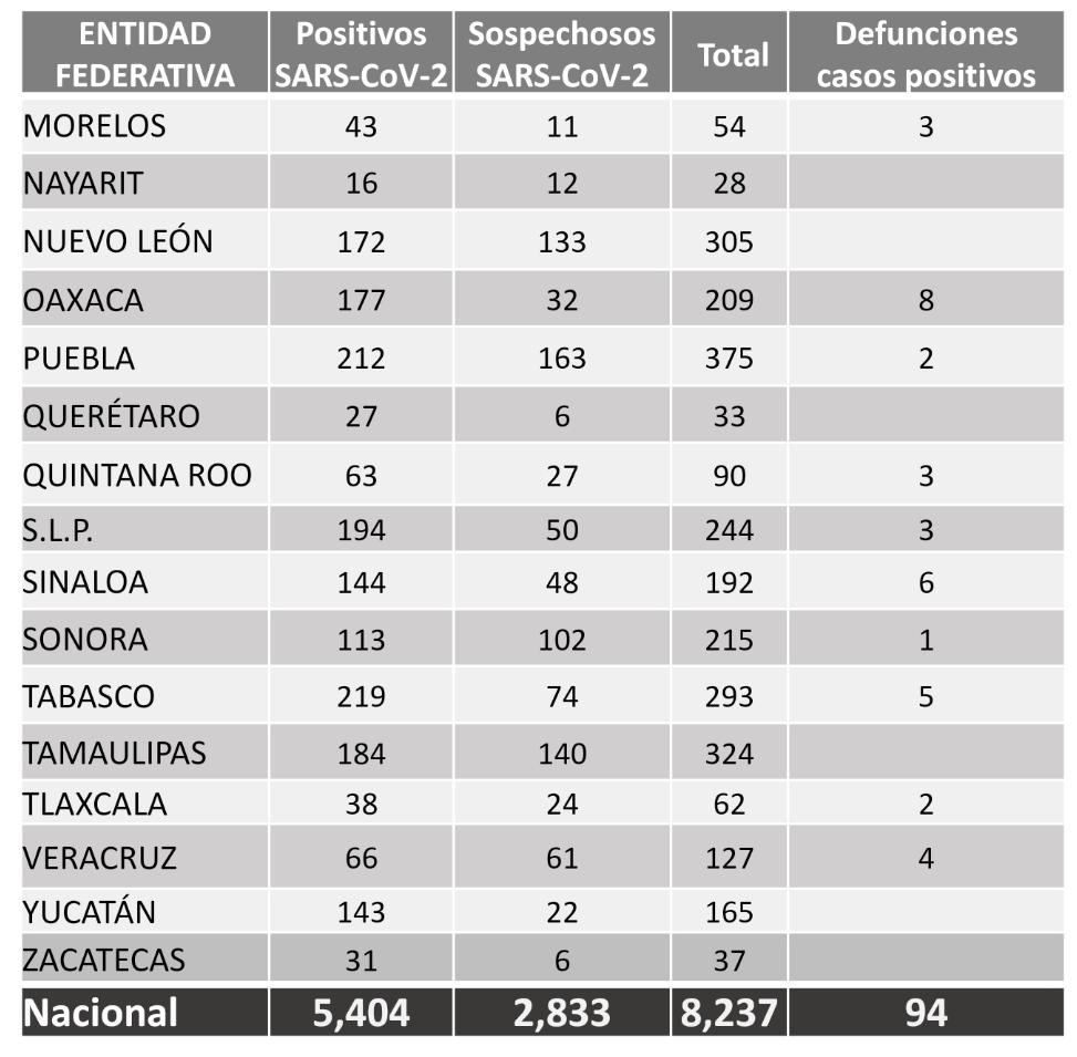 El registro oficial también detalla que en el estado de Veracruz hay 66 casos positivos y 61 sospechosos de menores de edad con coronavirus.