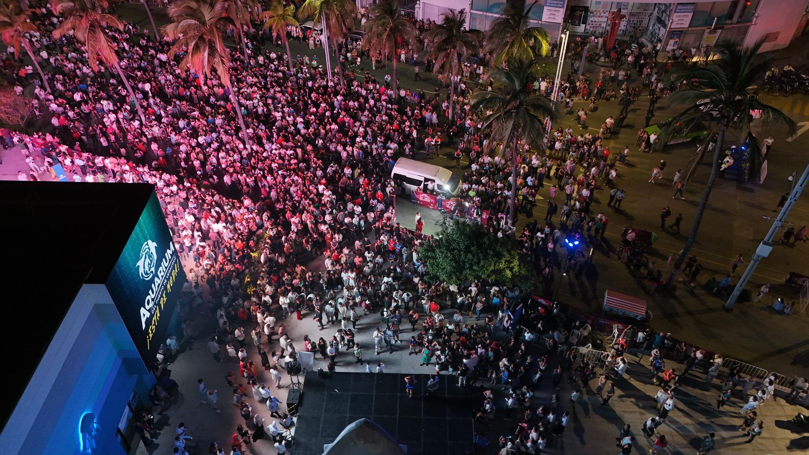 Veracruz, Ver.- Con gran entusiasmo y en un ambiente festivo, cientos de veracruzanos y turistas se congregaron al pie del emblemático Aquarium del Puerto de Veracruz para dar la bienvenida al Año Nuevo.