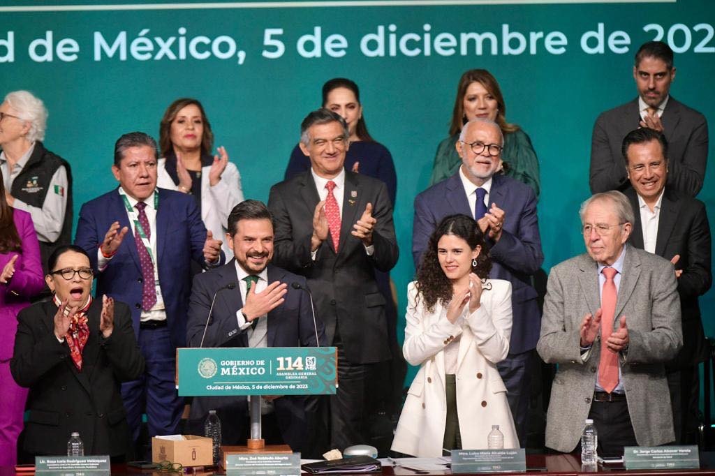 Asistieron a la 114 Asamblea General Ordinaria del IMSS los mandatarios de Aguascalientes, María Teresa Jiménez Esquivel; Colima, Indira Vizcaíno Silva; Morelos, Cuauhtémoc Blanco Bravo; Nayarit, Miguel Ángel Navarro Quintero; Puebla, Sergio Salomón Céspedes Peregrina; Tamaulipas, Américo Villarreal Anaya; Veracruz, Cuitláhuac García Jiménez; y Zacatecas, David Monreal Ávila.