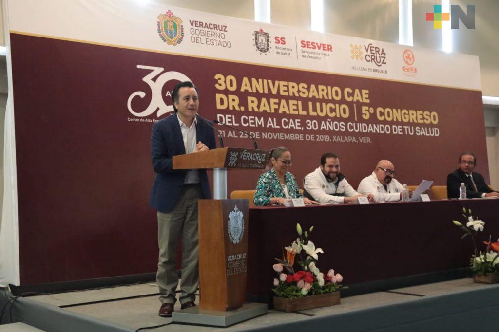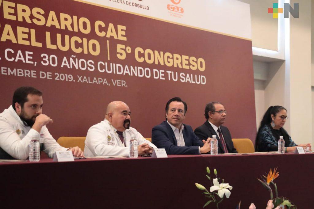 Xalapa, Ver.- Este jueves el gobernador Cuitláhuac García Jiménez inauguró el quinto congreso “Del Cem al Cae, 30 años cuidando tu salud”, como parte del treinta aniversario del Centro de Alta Especialidad.