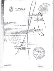 Según un documento de la Oficina del Gobernador, Consejería de Asuntos Legales, del Gobierno de Estado de Veracruz, signado el 13 de noviembre del 2013, Oficio CAL/012/13, dirigido a Fidel Kuri Mustieles, representante legal de la Promotora Deportiva del Valle de Orizaba A. C.; en el que se establecen las condiciones del Comodato y Usufructo, entre las que destaca que estadio de futbol y sus instalaciones.