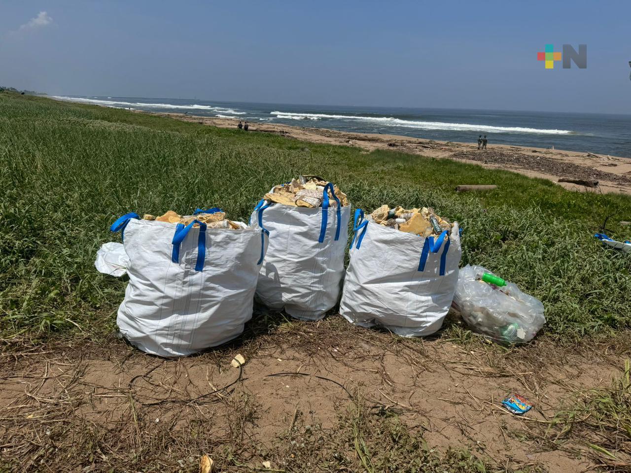 Recogen desde espuma, botellas y otros materiales que el Tog Mor ha dejado desde que se encalló.