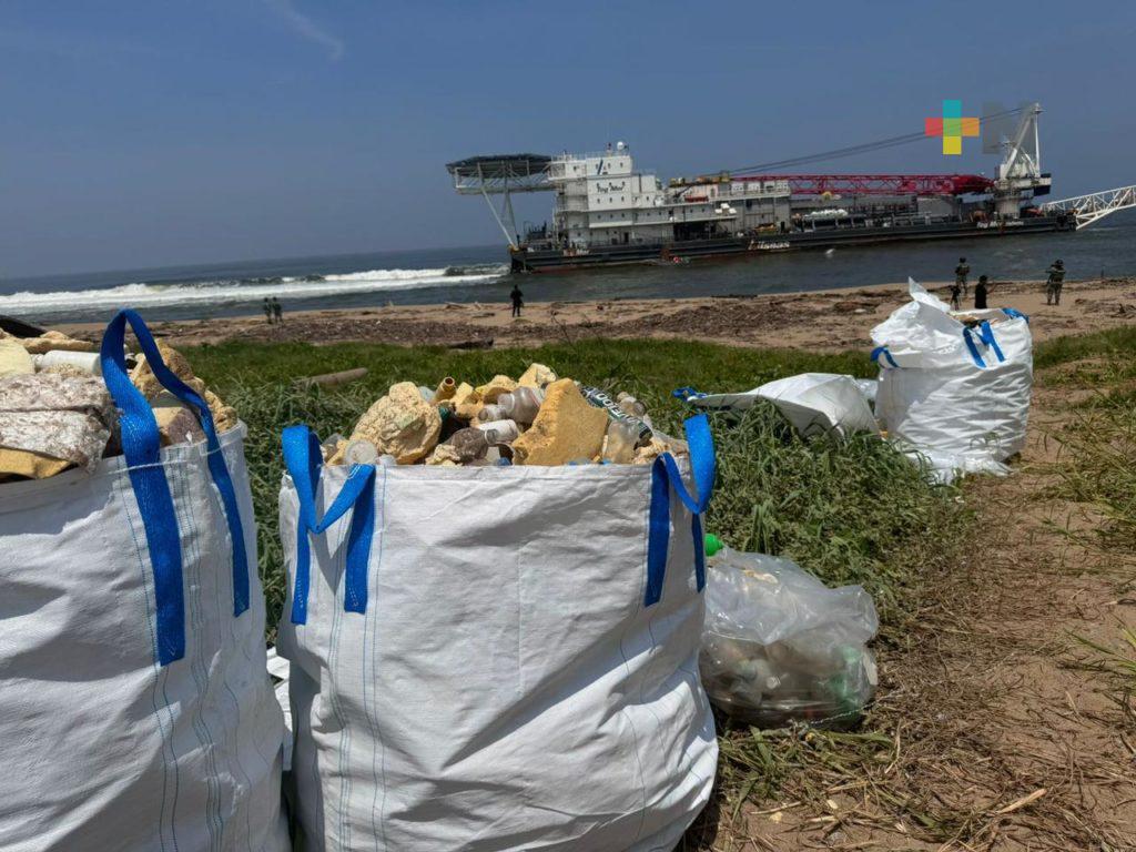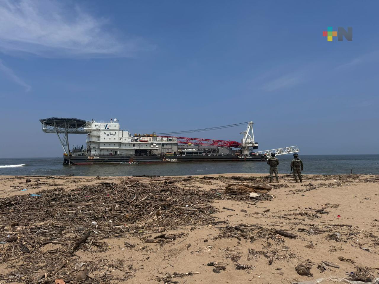 Cumple cinco días embarcación encallada en playa de Coatzacoalcos