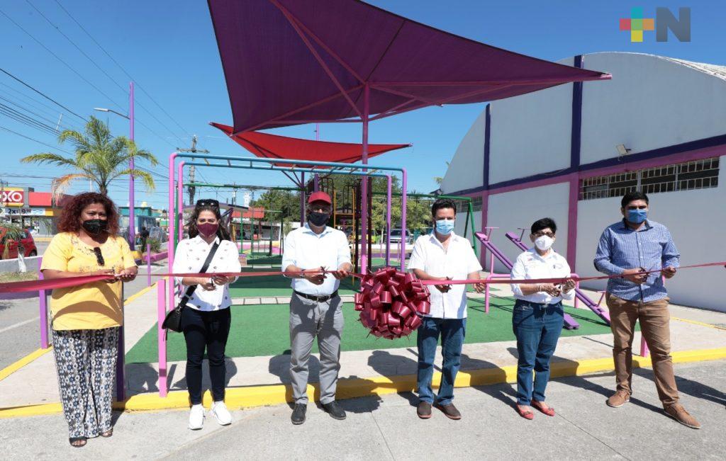 En la localidad Anáhuac, de Pueblo Viejo, el servidor público entregó el Paquete de Juegos Infantiles Accesibles e Inclusivos para que niñas, niños y adolescentes se diviertan y ejerciten, contribuyendo a su bienestar y crecimiento saludable.