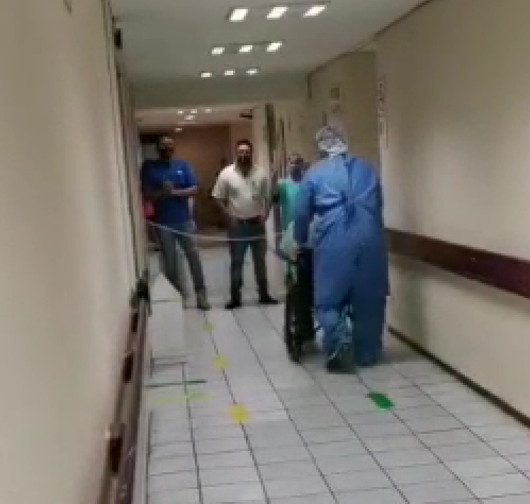 Uno de los pacientes recuperados fue un médico intensivista de dicho hospital de gineco-pediatría, quien fue despedido con el cariño de sus colegas expresado en fuertes aplausos.