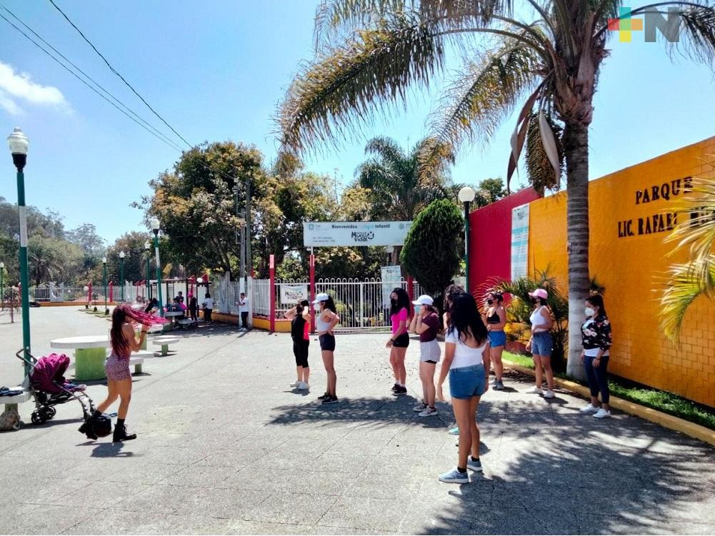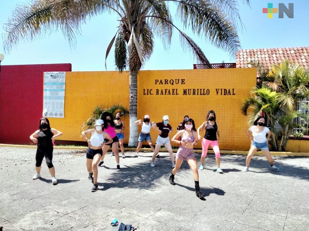 Aunque usan cubrebocas en sus prácticas, también ofrecen clases por zoom. Se encuentran en Facebook como BubbleBlack Twerk team Xalapa.