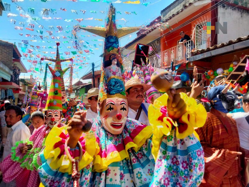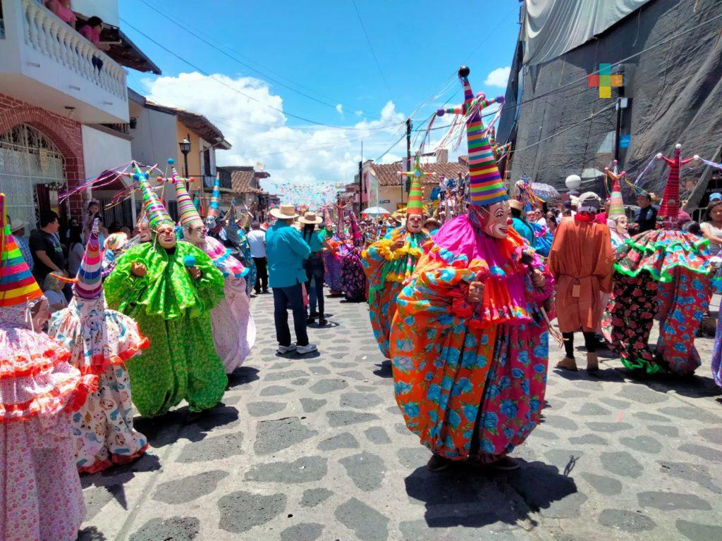 Xico, Ver.- Las danzas de los santiagos, de los tocotines, de la banda cruzada y de los payasos alegran y llenan de mucho color a la fiesta de santa María Magdalena en Xico.