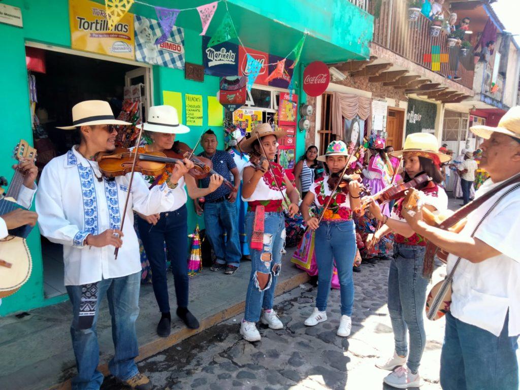 La música tradicional suena todo el día durante la procesión del arco floral, guiando los pasos de los danzantes con la jarana huasteca, el violín y la vihuela. Música que seguirá sonando entre las generaciones de pobladores de Xico.