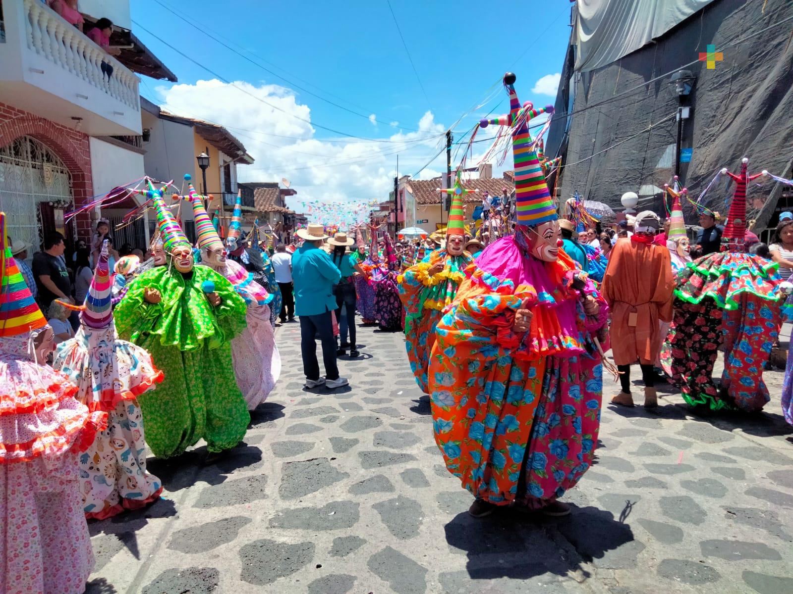 Xico, Ver.- Las danzas de los santiagos, de los tocotines, de la banda cruzada y de los payasos alegran y llenan de mucho color a la fiesta de santa María Magdalena en Xico.