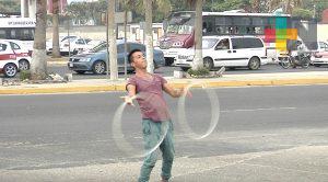 Coatzacoalcos, Ver.- Utilizan diversos objetos combinados con preparación y creatividad para alegrar en los semáforos de Coatzacoalcos. Son los malabaristas callejeros.