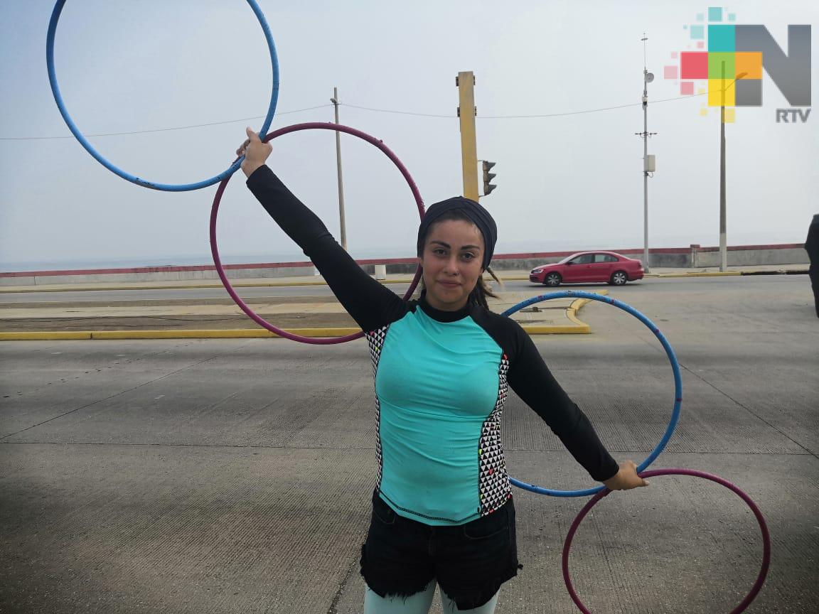 El arte circense urbano acapara los semáforos de Coatzacoalcos y varios puntos del país, Gabriela conocida como Luna, originaria de León Guanajuato practica las artes circenses desde hace seis años.