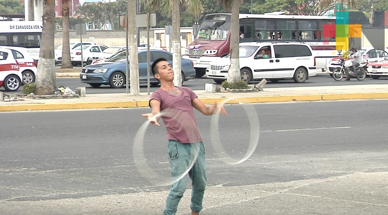 Coatzacoalcos, Ver.- Utilizan diversos objetos combinados con preparación y creatividad para alegrar en los semáforos de Coatzacoalcos. Son los malabaristas callejeros.