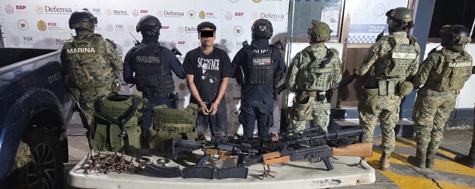 En Coatzacoalcos fue aprehendido un masculino por delitos contra las instituciones de Seguridad Pública y en Tuxpan se aseguró un arma de fuego larga, granadas de 40 mm, una granada de fragmentación y una camioneta sin reporte de robo.
