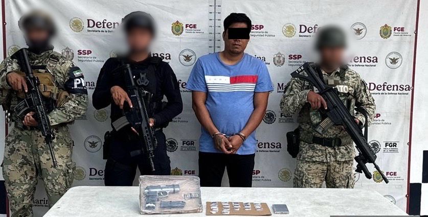 Aseguraron 50 dosis y una bolsa de una sustancia con las características del cristal, así como ocho dosis, 37 bolsitas, 17 bolsas, un frasco, un sobre y un cigarro de hierba verde similar a la marihuana; un arma de fuego corta, una hechiza y dos de diábolos, cargadores, cartuchos útiles; pipas y trituradoras.