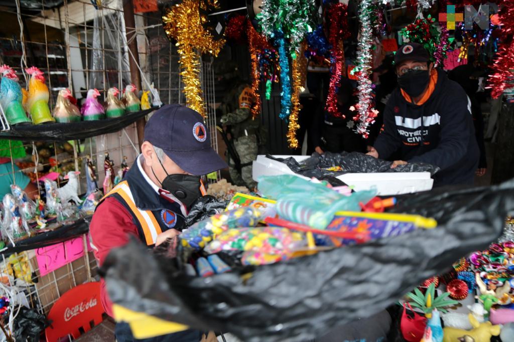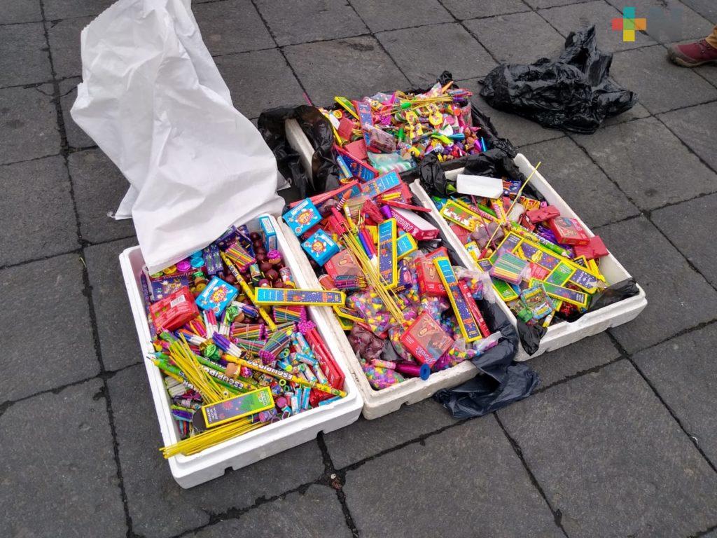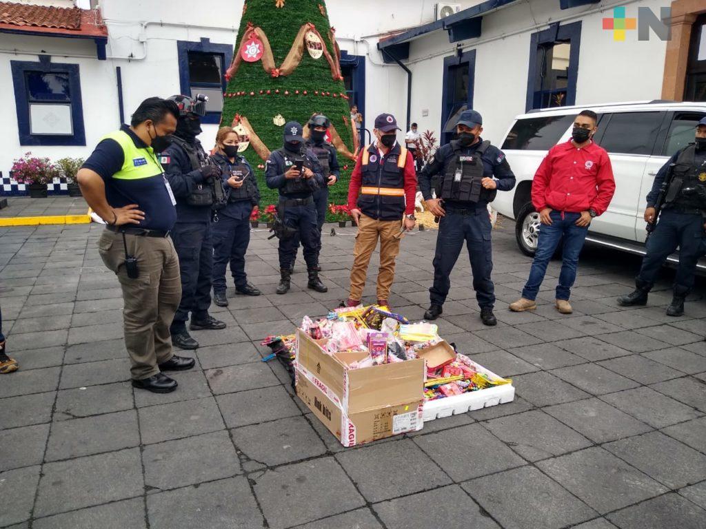 Xalapa, Ver.- En un operativo conjunto entre la Secretaría de la Defensa Nacional (SEDENA), elementos de seguridad y de Protección Civil Municipal se decomisaron 60 kilos de artefactos pirotécnicos en la periferia y centro de Xalapa.