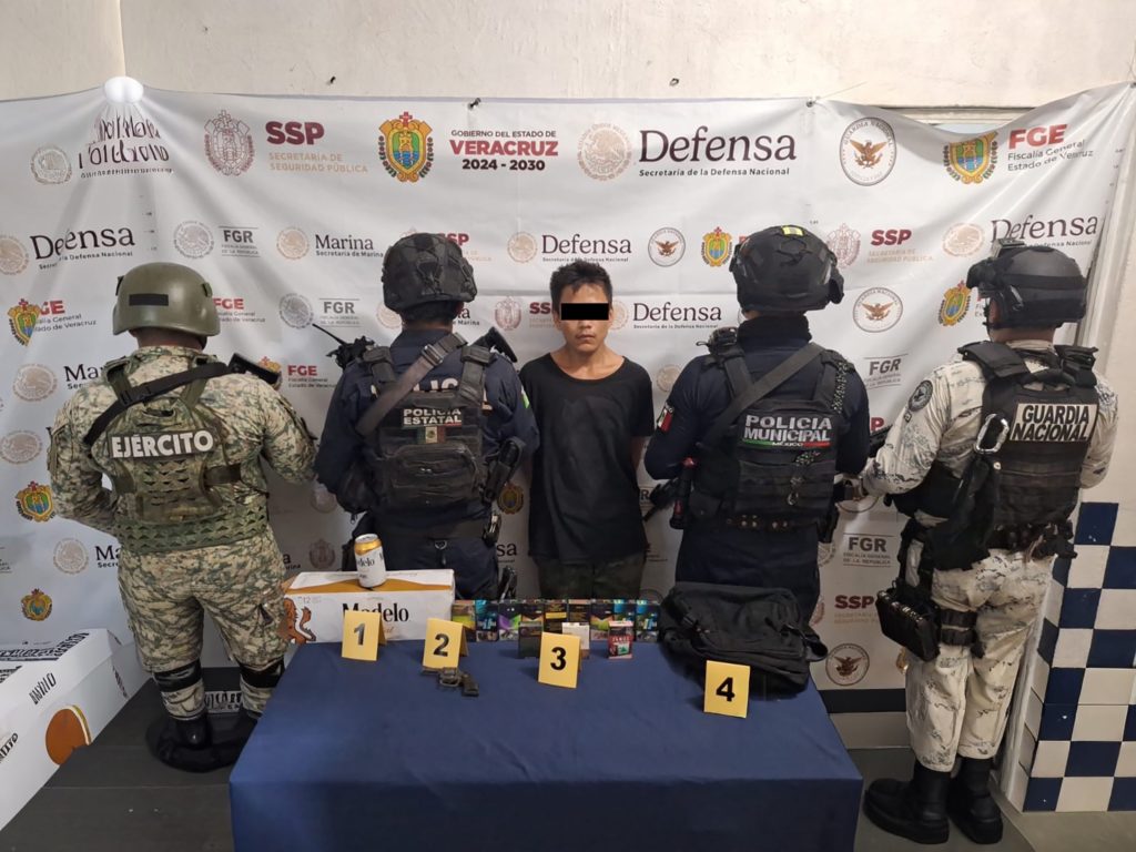 En Papantla, un masculino con 40 dosis y una bolsa de una sustancia con características similares al cristal, una báscula y un vehículo sin reporte; en Veracruz otra persona con cuatro dosis de la misma sustancia antes mencionada.
