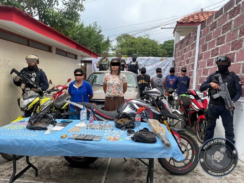 En apoyo a la FGE, durante el cumplimiento de órdenes de cateo en San Andrés Tuxtla, La Perla, Papantla, Tlapacoyan, Tres Valles y Jesús Carranza, fueron detenidas 15 personas, entre ellos un menor de edad; se aseguraron 166 dosis y dos bolsas de una sustancia con características similares al cristal, 30 dosis y dos bolsas de hierba verde con características similares a la marihuana, 120 pastillas con características a la cocaína y una bolsa características similares al crack (piedra).
