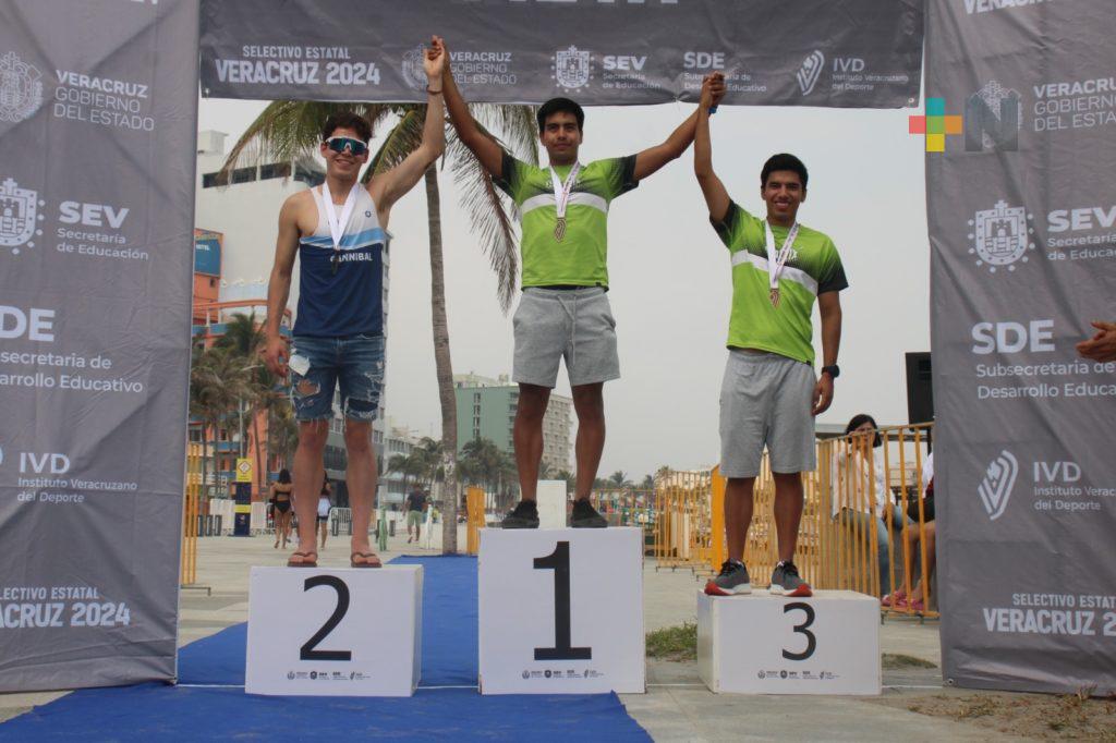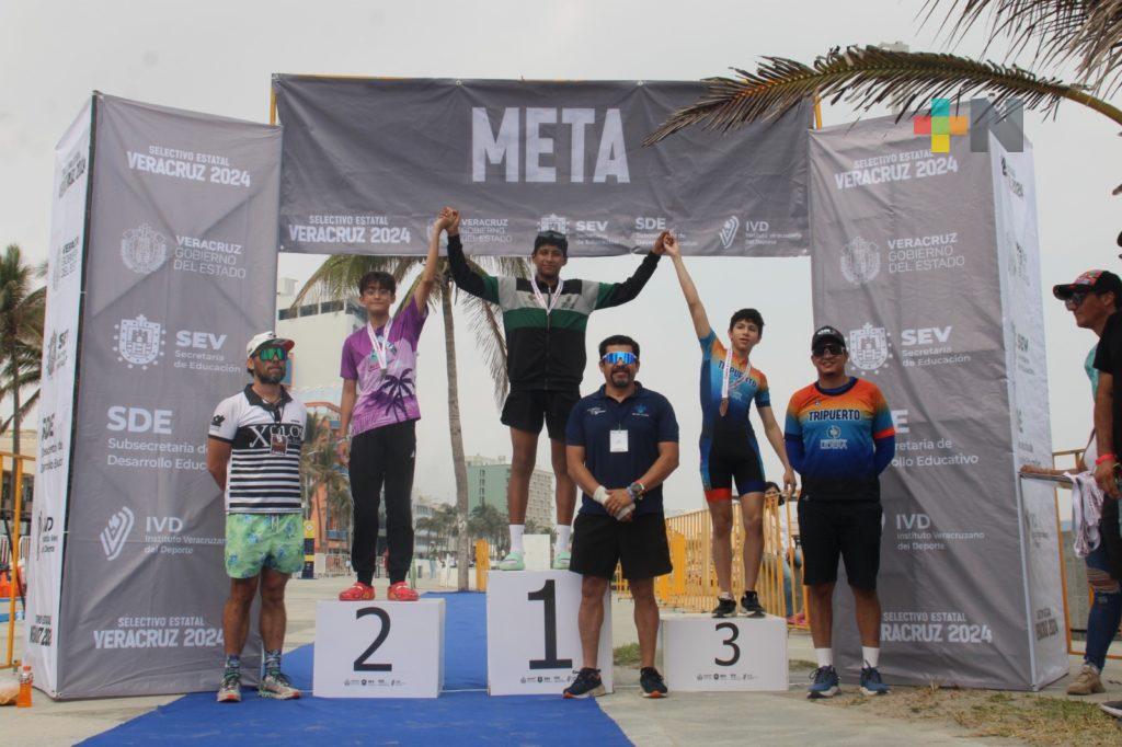 El evento, celebrado en la playa regatas Veracruz y coordinado por el Instituto Veracruzano del Deporte (IVD) y la Asociación de Triatletas de Veracruz A.C., deporte que reunió a más de un centenar de varios municipios de la entidad en las categorías, 13-15 años, 16-17 años. 18-19 años y 20-23 años en las dos ramas.