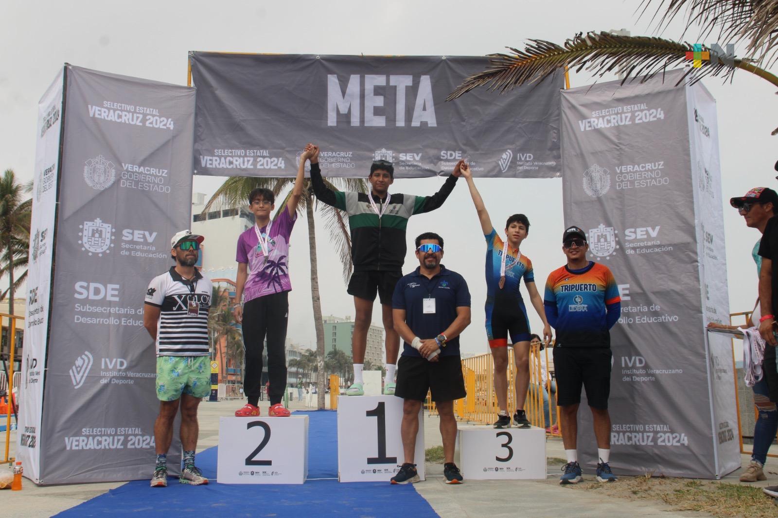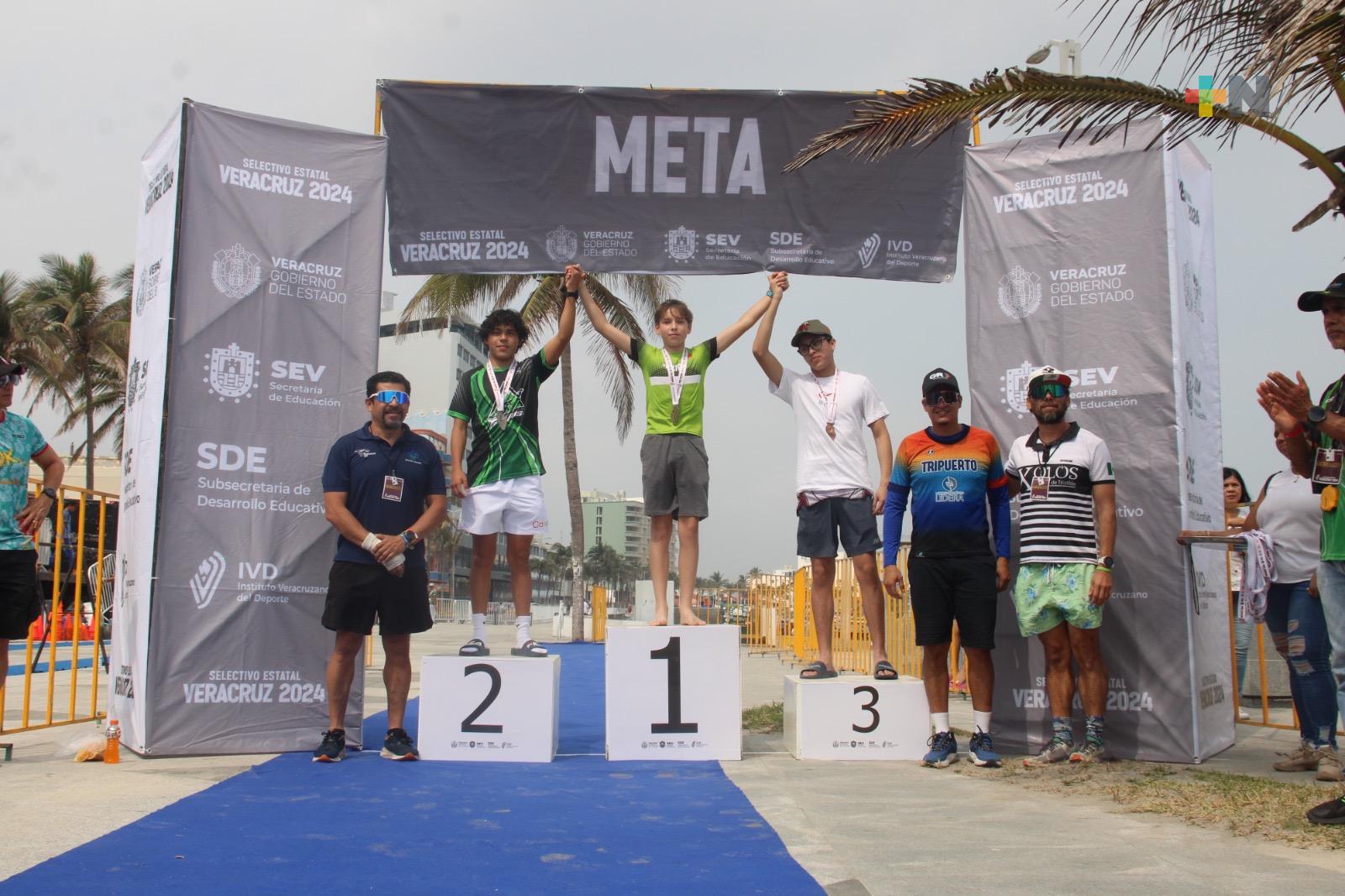 El evento, celebrado en la playa regatas Veracruz y coordinado por el Instituto Veracruzano del Deporte (IVD) y la Asociación de Triatletas de Veracruz A.C., deporte que reunió a más de un centenar de varios municipios de la entidad en las categorías, 13-15 años, 16-17 años. 18-19 años y 20-23 años en las dos ramas.