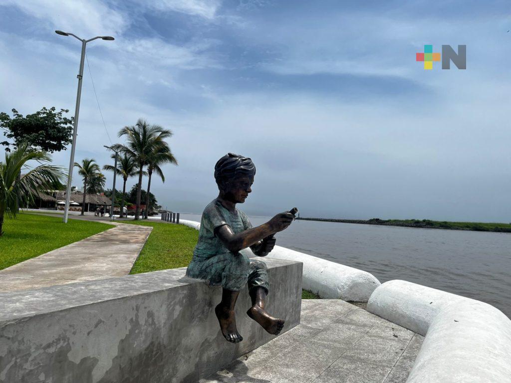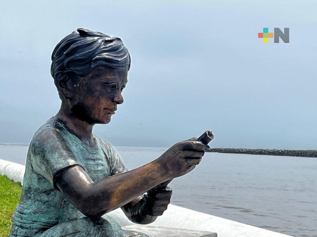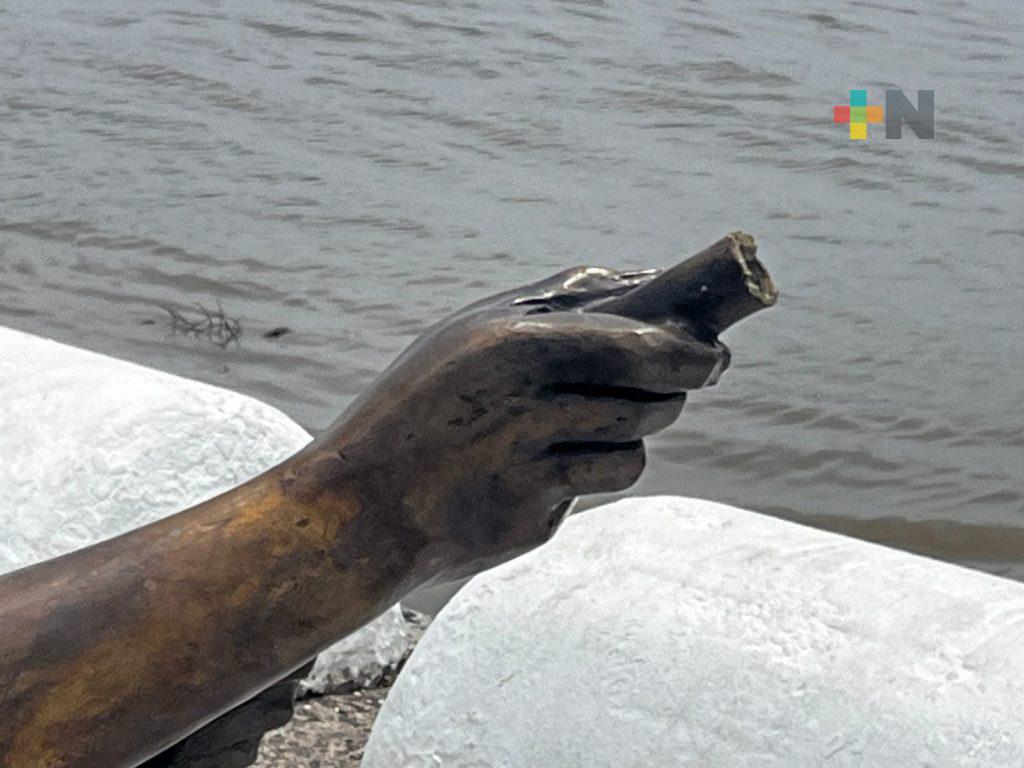 A la escultura de bronce le robaron la caña de pescar, pieza que formaba parte de la obra conmemorativa frente al río Jamapa.