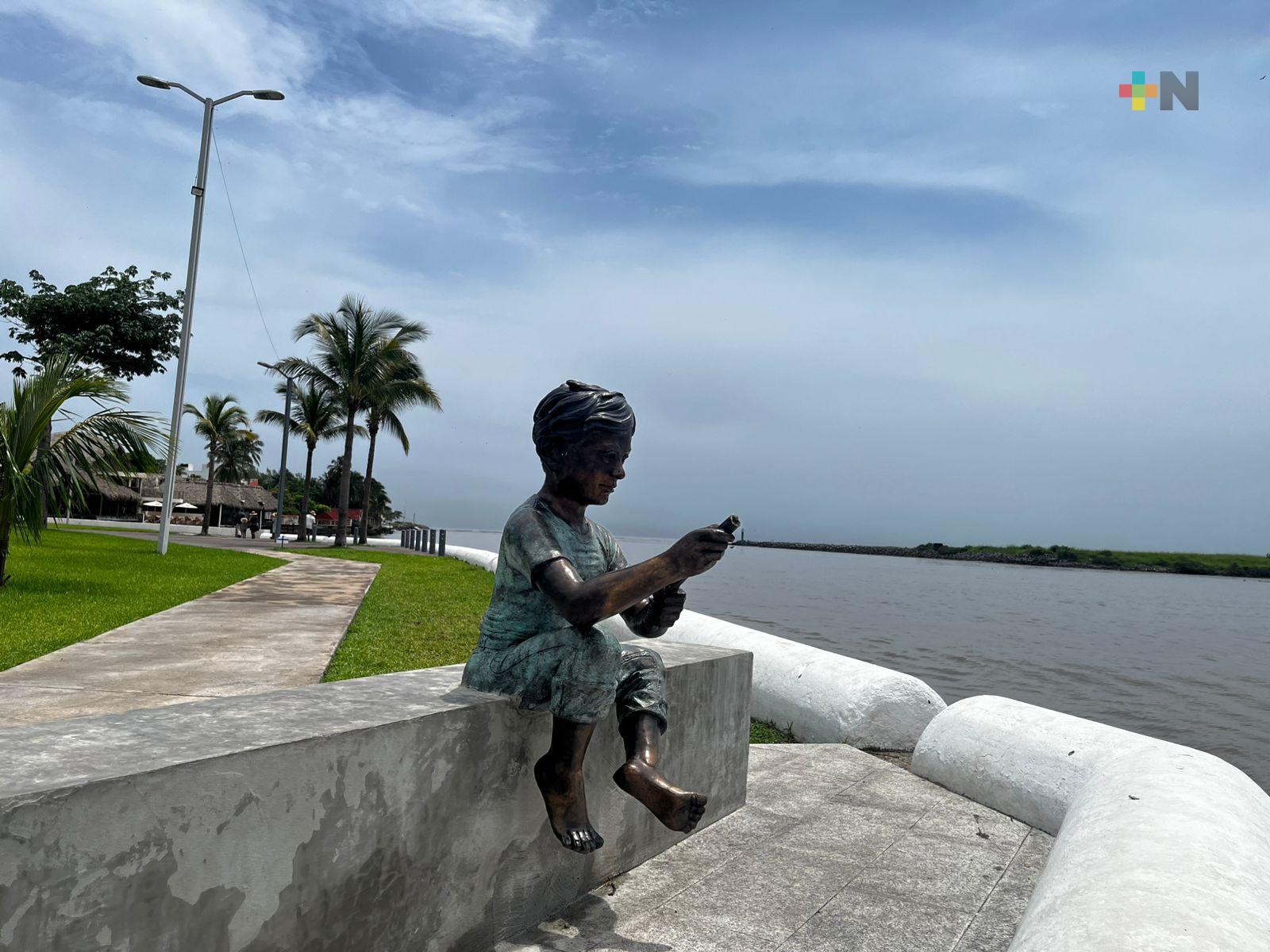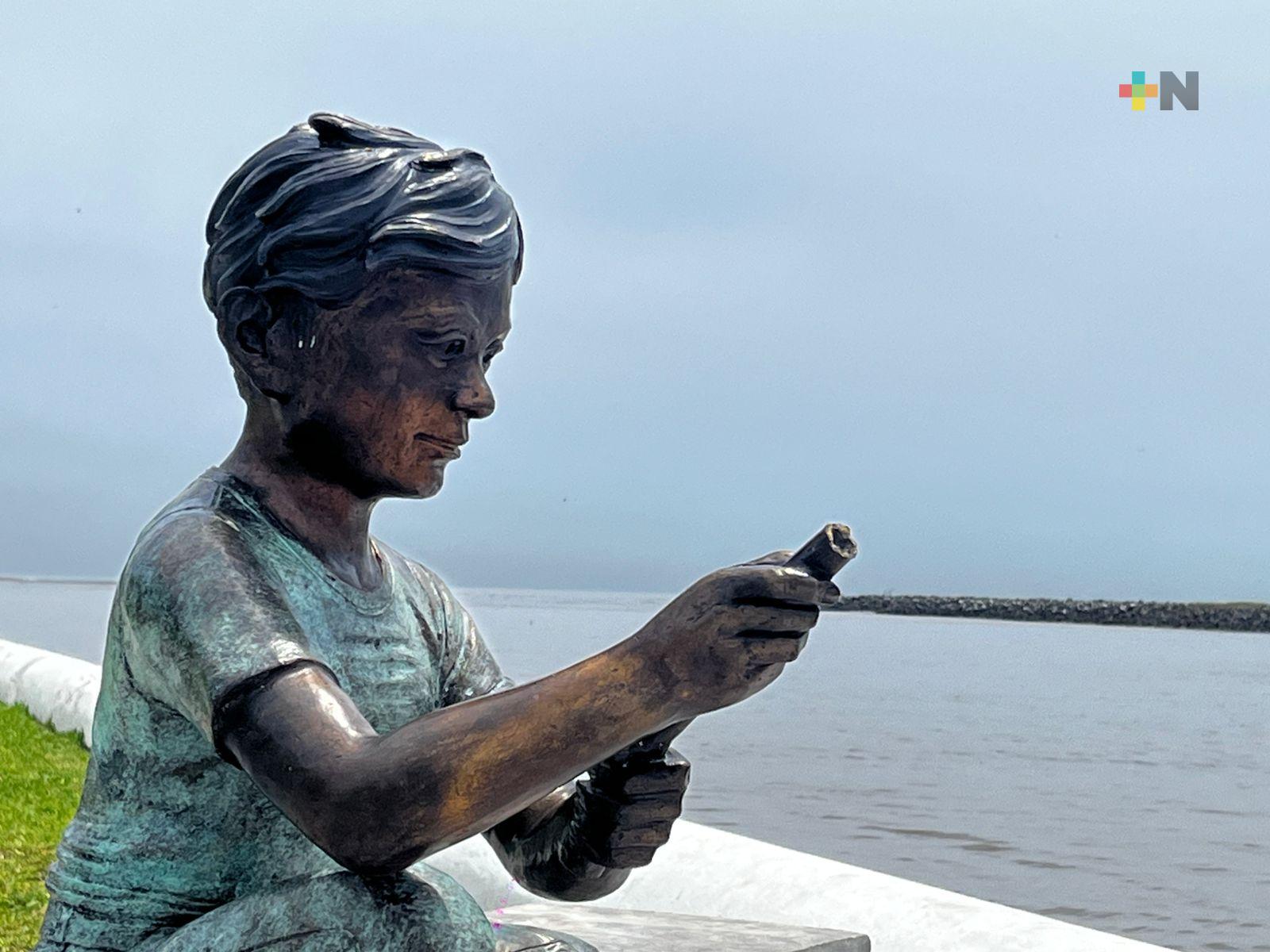 A la escultura de bronce le robaron la caña de pescar, pieza que formaba parte de la obra conmemorativa frente al río Jamapa.