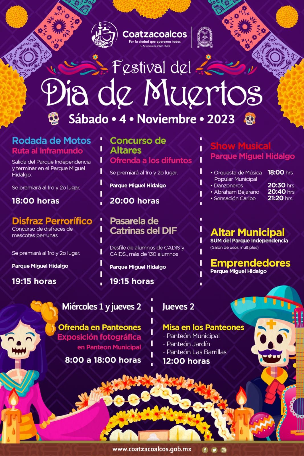 Coatzacoalcos, Ver.- Desde el 1 hasta el 4 de noviembre se van a desarrollar diferentes actividades alusivas a la celebración del Día de Muertos en Coatzacoalcos.