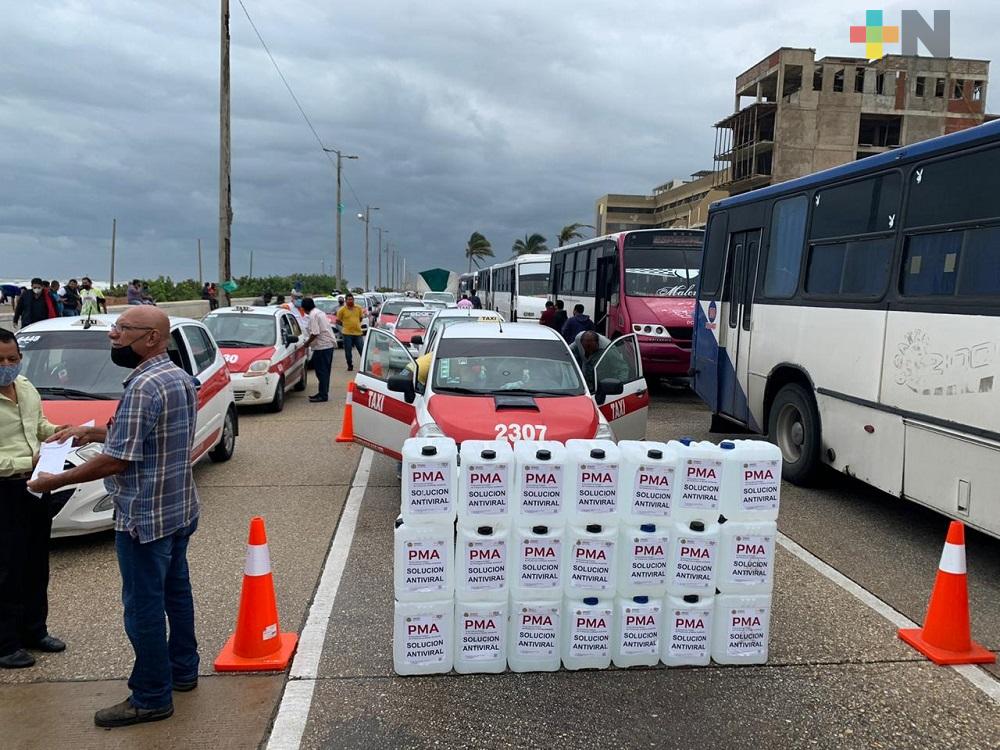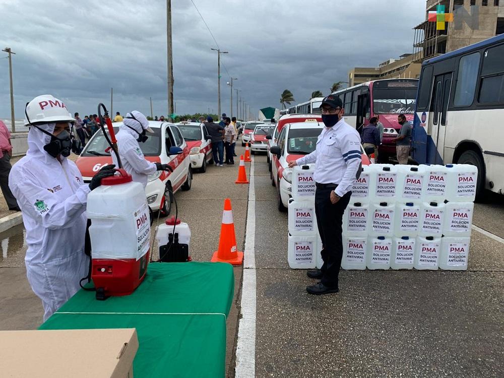 Se desinfectaron con apoyo de PMA mil 500 unidades de taxi y 150 de urbano en Coatzacoalcos.