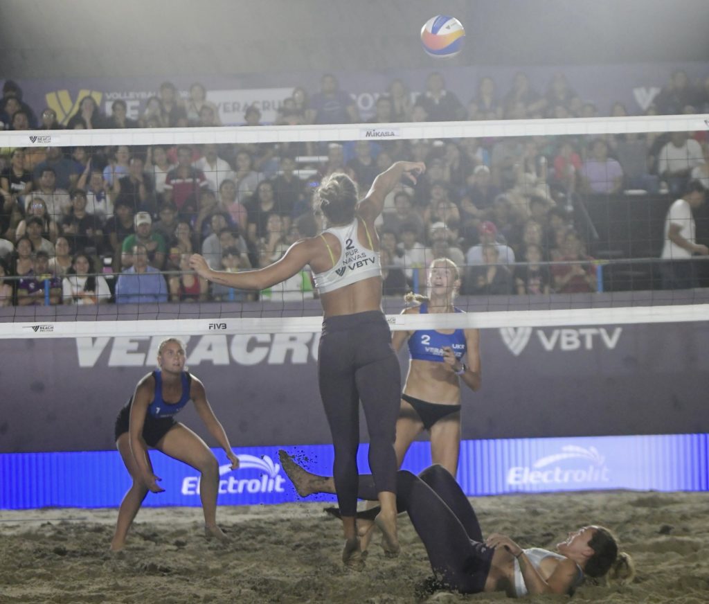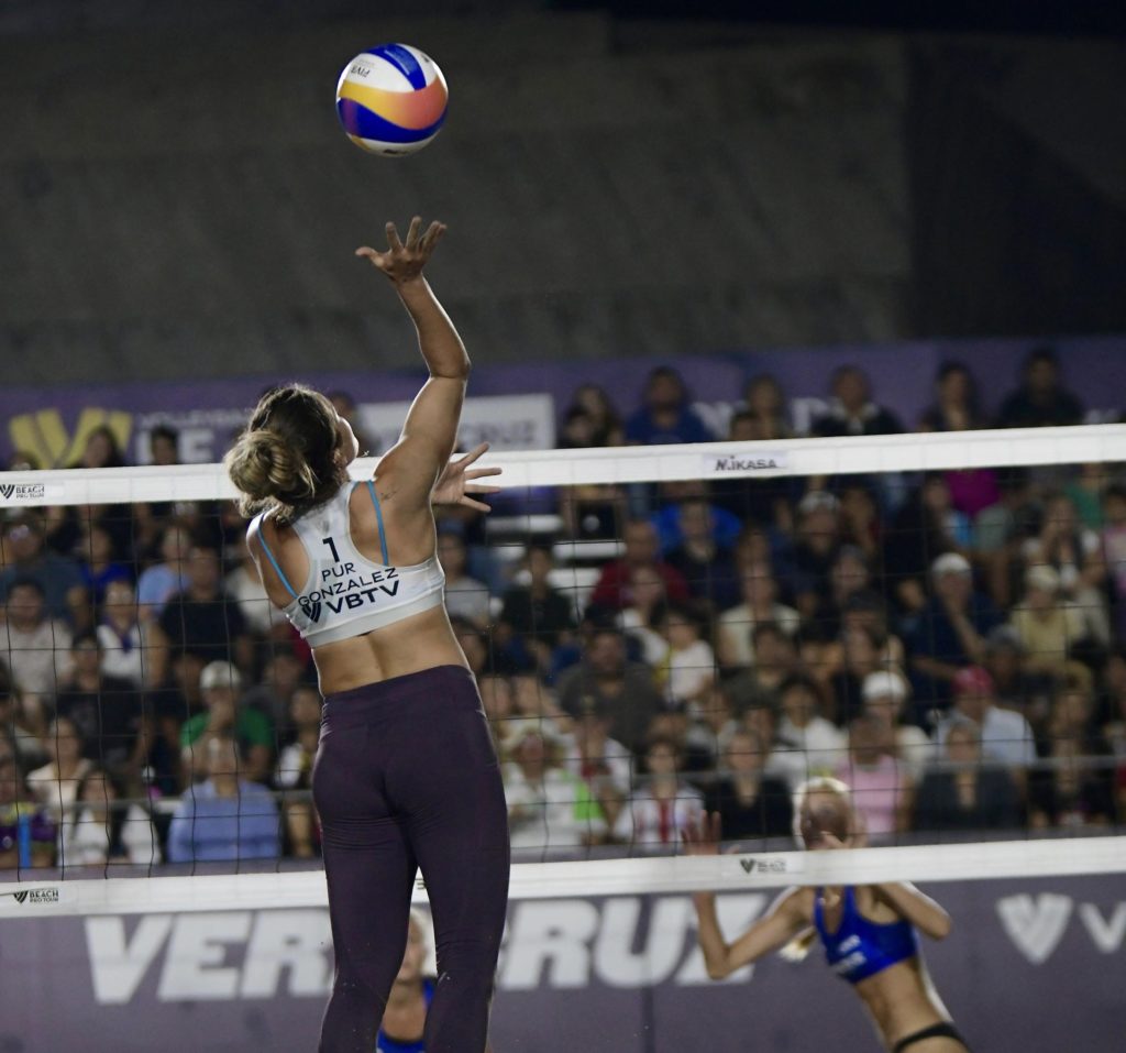 Boca del Río, Ver.- Con la asistencia de más de dos mil personas en la cancha principal instalada junto al Foro Boca, el Tour Mundial de Voleibol de Playa Challenge Veracruz vivió este viernes una jornada intensa con los partidos de clasificación femenil rumbo a los octavos de final.